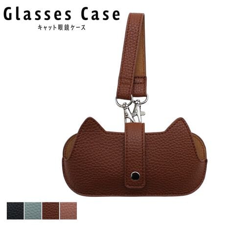 猫の顔型デザインがキュートなストラップ付きメガネケース。