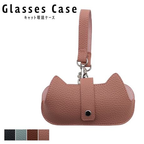 猫の顔型デザインがキュートなストラップ付きメガネケース。