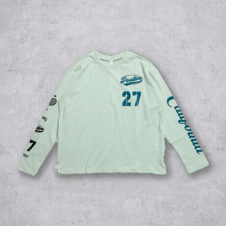 胸元&袖にロゴやナンバーをプリントした、ストリート感のあるスポーティーなデザインです。