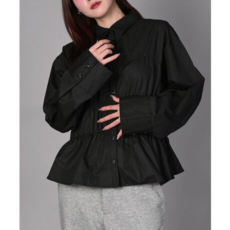 レギュラーカラーのシャツにフェミニンなシャーリングデザインをプラス。