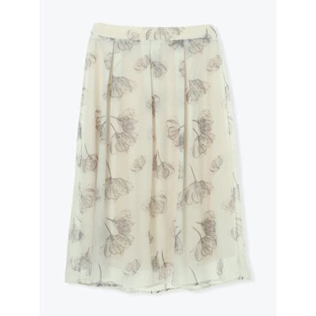 ふんわりとしたシアー生地に花柄プリントをあしらった大人フェミニンスカート。