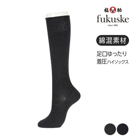 【fukuske 】 靴下 無地 ハイソックス丈 綿混素材 着圧(4363-605)
