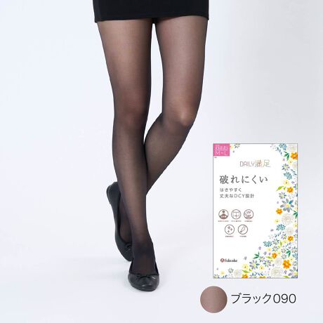 「満足」のセカンドライン「DAILY満足シリーズ」です。すべて多足組ですので、コスパ重視の方にもおすすめ。快適な履き心地と日常使いに嬉しい耐久性を追求した一品です。特徴的なDCY交編(ダブルカバリングヤーン)を採用することで、通常のストッキングよりも透明感があり優れたフィット感と高い耐久性を実現しました。