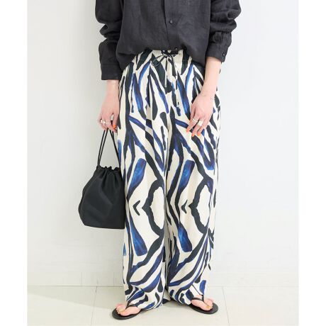 セルロース混のソフトタッチな生地にプリントしているので、色合いも鮮やかで春の訪れを予感させます。ロンドンのプリントスタジオによる水彩タッチの抽象的な3柄で展開。ウエストぐるりゴム仕様、前後にタックを入れたセミワイドバルーンのNEWシルエット。落ち感があるのでボリューム感も気にせず着用いただけます。