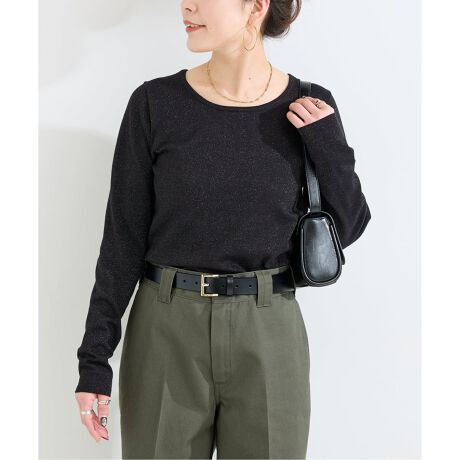 主張しすぎないラメなので、ジャケットやカーディガンのインナーとして使いやすいアイテムです。シンプルながらも存在感のあるアイテムで、いつものスタイリングに合わせるだけでさりげなくアップデートできるトップスです。