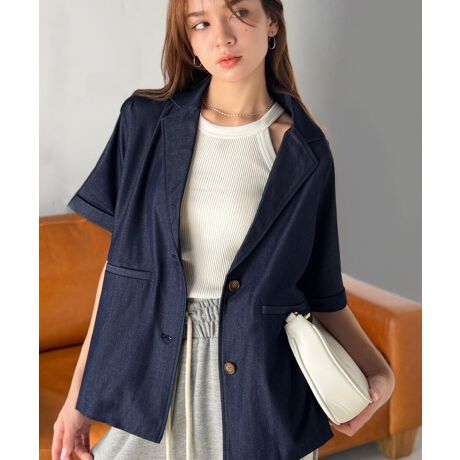 ライトなデニム生地で涼しく快適に着られるハーフスリーブジャケット。