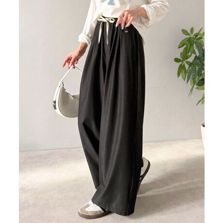 ウエストはゴム仕様で履き心地抜群、フロントタックですっきり見えるワイドパンツです。