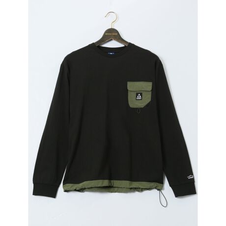 コーディネートの主役アイテムにぴったりな、クルーネックの長袖Tシャツです。ナイロン素材で切り替えた裾と左胸ポケット、GERRYロゴ入りのピス、裾部分のドローコード、衿・袖口のリブパーツがポイント。タウンユースはもちろんキャンプやトレッキング等のアウトドアシーンでも重宝します。