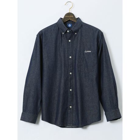 綿デニム ボタンダウン長袖シャツ