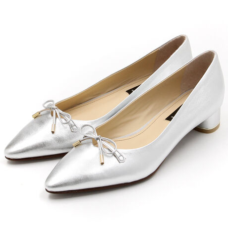 小ぶりなリボンが上品にあしらわれた、クラシカルなポインテッドトゥパンプス。すっきりとしたシルエットに可憐なアクセントを添え、足元をエレガントに演出します。低めのヒールは安定感があり、長時間の着用でも疲れにくい設計。デイリーから通勤、フォーマルシーンまで幅広く活躍する万能な一足です。[型番:681416]