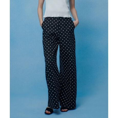 リネンコットンの表情感のあるベースに、ドット柄をプリントしたオリジナル素材を使用。
