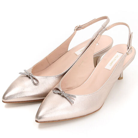 リボンモチーフポインテッドトゥバックストラップパンプス