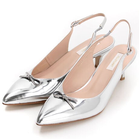 リボンモチーフポインテッドトゥバックストラップパンプス