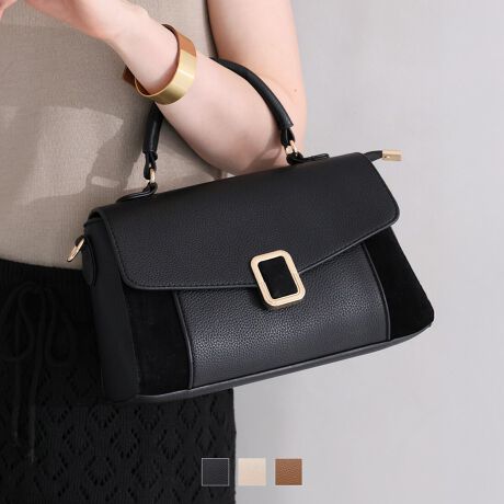 【26春夏新作】バックル付き異素材コンビフラップ2WAYバッグ