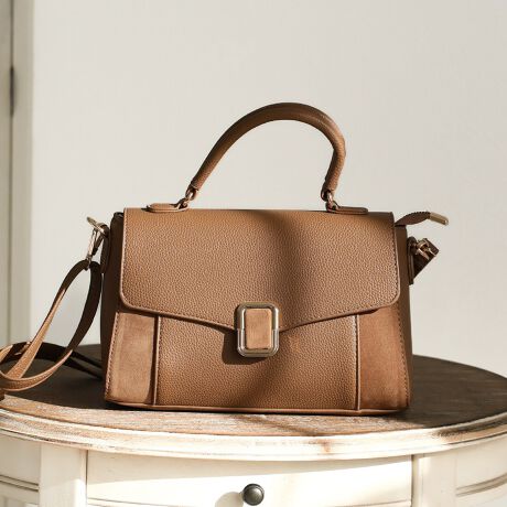 【26春夏新作】バックル付き異素材コンビフラップ2WAYバッグ