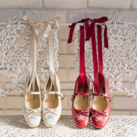 繊細な小花刺繍がクラシカルなバレエパンプス。
