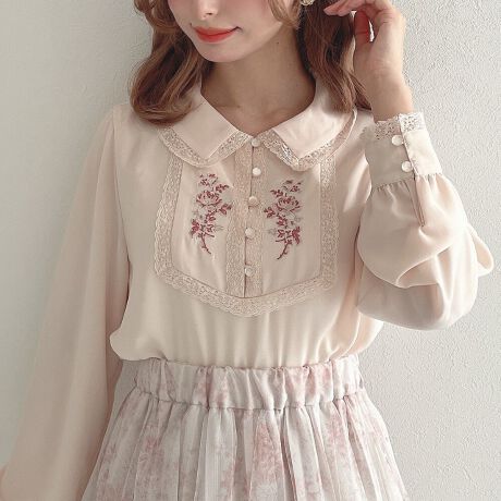 ヨークにあしらった繊細なローズ刺繍がとびきりクラシカルなブラウス。