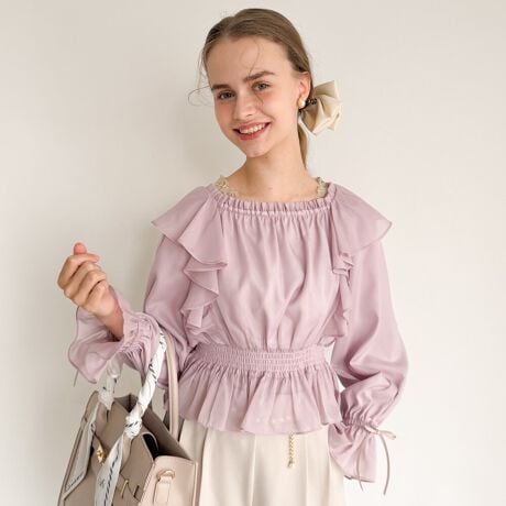 エアリーなシアーラッフルがフェミニンなブラウス。