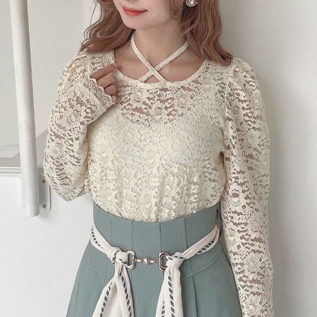 今季注目のホルターリボンが目を惹く総レーストップス。
