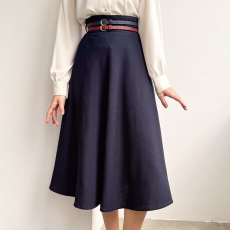 配色ダブルベルトがフレンチなムードたっぷりのフレアースカート。