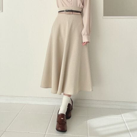 配色ダブルベルトがフレンチなムードたっぷりのフレアースカート。