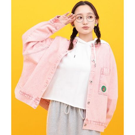 ロゴTシャツなどにデニムジャケットを重ねた、レイヤードスタイルがおすすめ。