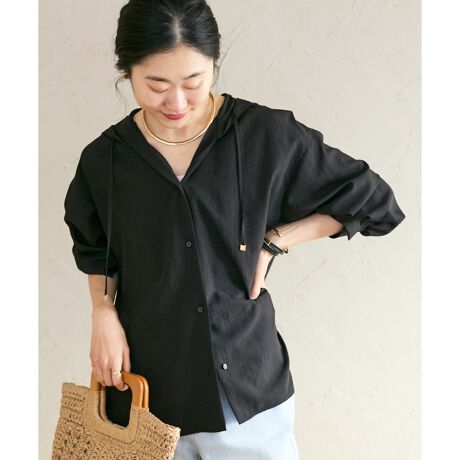 さらっと滑らかな素材で大人リラックス感のあるフードブラウス。