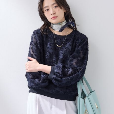 トレンド感ある華やかなシアーカットジャガード素材を使用したトップスです。