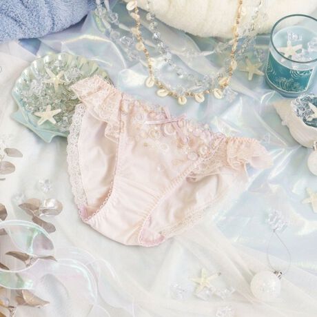 水中で優雅に泳ぐ、人魚姫のきらめく世界観を表現したシリーズです。大小様々に刺繍したリアルな気泡が浮遊感を演出し、透明感のあるラメ糸が水中の繊細な揺らめきを表現。一瞬一瞬で表情を変える気泡のデザインにこだわり、ステッチを繊細に変化させました。可愛らしい星形のヒトデが泡の中にさりげなく溶け込み、可愛らしさと遊び心をプラス。人魚の優美な尾ひれをイメージしたチュールをあしらうなど、わくわくするようなファンタジーな世界を演出してくれるコレクションです。