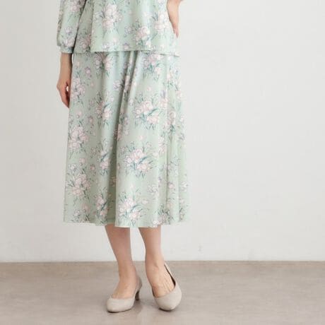 華やかな柄行きなので、シンプルなカットソーやニットとも相性が良く、デイリーからちょっとしたお出かけまで幅広く活躍するアイテムです。