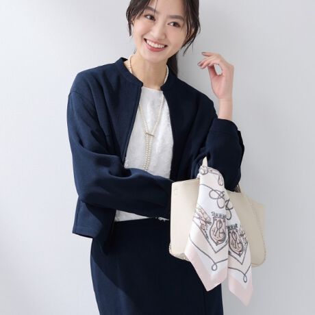 同じ素材のスカート(505−75200)とのセットアップスタイルがおすすめです。
