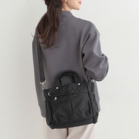 中と外に9つのポケットがあるミドルサイズのトートバッグです。