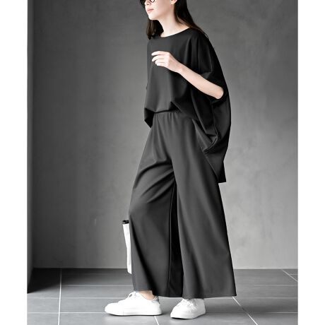 パンツはワイドシルエットでリラクシーにご着用いただけます。