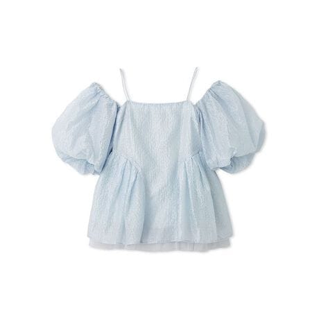 毎シーズン高い人気を誇るペプラムビスチェが、ディテールをアップデートして今季も登場。胸元は切り替えを無くし、すっきりと大人っぽい印象に。ペプラム部分にはチュールを挟み込み、裾からふわりと覗くチュールが儚くロマンティックなムードを演出します。花柄と無地の2タイプ展開で、スタイリングに合わせて選べるのも嬉しいポイント。付属のリボンはボタンで簡単に取り外しでき、パフスリーブ・オフショルダー・キャミソールの3WAYでアレンジ自在。コーディネートの幅がぐっと広がる主役級の一枚です。