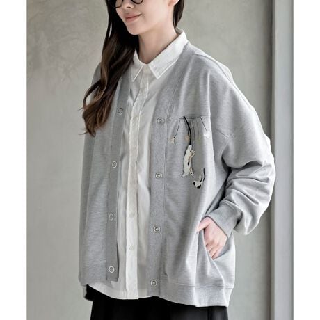 ブラブラキャットミニ裏毛Vネックカーディガン