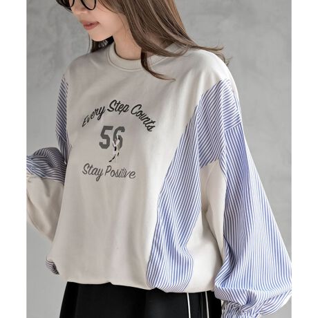 無地×ストライプ切替ミニ裏毛ドロストプルオーバー
