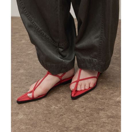 アシンメトリーラインの細ストラップが、脚を華奢に見せてくれるフラットサンダル。