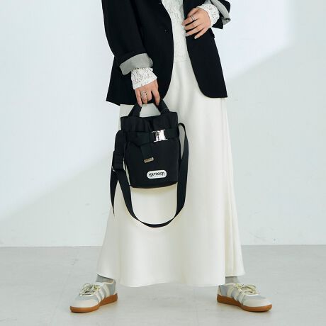 ・ベルトデザインがアクセントになり、シンプルコーデにこなれ感をプラス