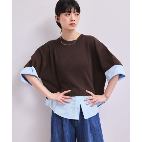 半袖ニットとシャツをレイヤードしたようなプルオーバー。