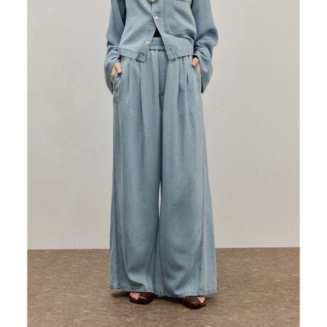 ウエストゴムのイージーなワイドデニムパンツ。