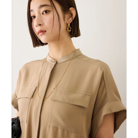 スタンドカラーは首元をすっきりと見せ、アクセサリーとの相性も◎