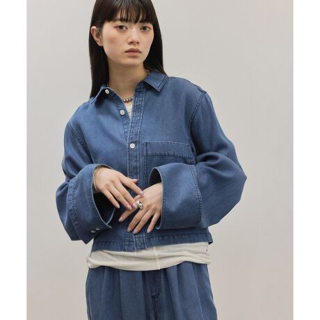 コンパクトめな身幅と着丈に対してのワイドスリーブのバランスが魅力的なデニムシャツ。