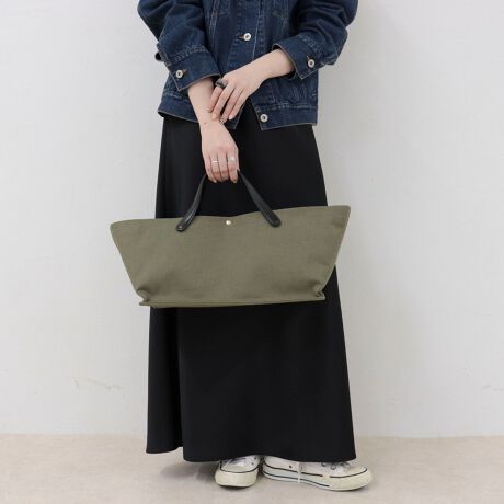 ・ナチュラルなキャンバス地に上質なレザーハンドルを組み合わせた横長シルエットのトートバッグ
