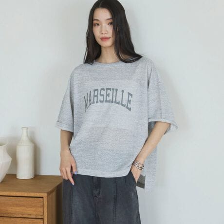 ・さりげないシアー感とロゴがオトナにオススメのニット