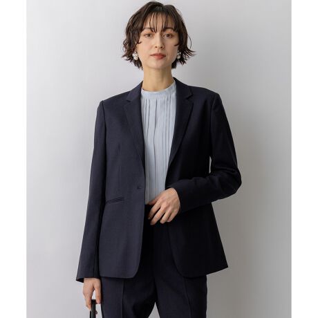 少し長めの丈が特徴のテーラードジャケットは、シンプルな一つボタンデザインで、マニッシュになりすぎず上品な印象に仕上げました。単品のジャケットとして幅広いスタイリングに活躍し、同シリーズのパンツと合わせれば、きちんと感のあるセットアップスタイルも楽しめます。 カジュアルなボトムスと合わせれば、デイリー使いにも最適な着回し力抜群の一着です。袖口には重ねスリットをあしらっており、折り返して軽やかな印象にアレンジすることも可能です。素材の軽やかさも魅力で、前を開けて肩にさらっと羽織るだけで、こなれた大人の着こなしが完成します。 カラーは、上品で洗練された印象のライトグレー(#003)、やわらかくどんなスタイルにも馴染む万能カラーのベージュ(#033)、知的で落ち着いた印象でビジネスシーンにも最適なネイビー(#075)の3色展開です。