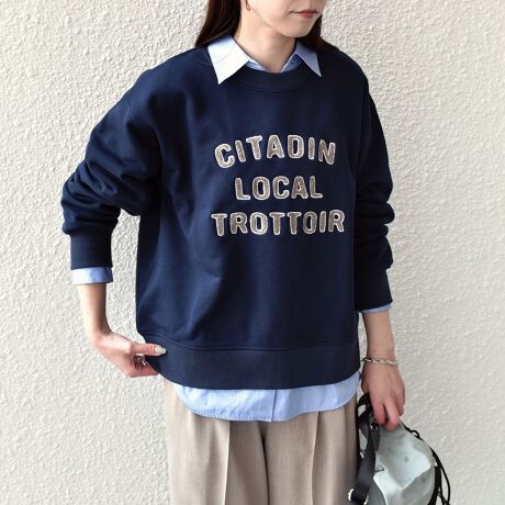 フロントのサガラ刺繍が目を惹くロゴスウェット。