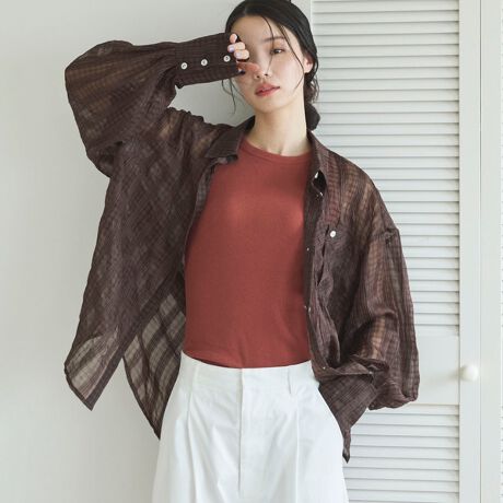 縫製したブラカップ付きで、アンダーゴムは胴回り一周に縫製され、着用の安定感があります。アメリカンスリーブのデザインですが、大人の女性や、これまでアメリカンスリーブに躊躇していた人でも着やすい、程良い空き加減です。丈は若干短め、スリーブイン、アウトでも着用可能。