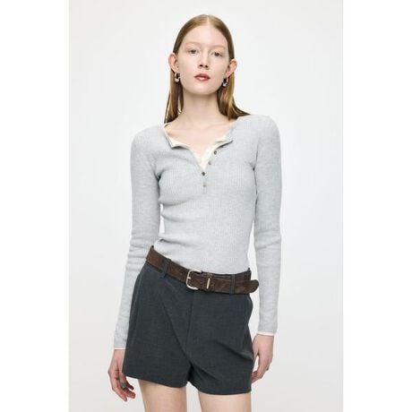 【SILK MIX HENRY NECK TOP / シルクミックス ヘンリー ネックトップス】■ポイント&ディティール上品な質感が魅力のニットトップス。ヘンリーネックデザインが程よい抜け感を生み、シンプルながらも洗練された大人の雰囲気を演出します。フロントのヘンリーネックは開閉の具合で印象を調整でき、シェルボタンがさりげないアクセントに。■スタイリング一枚ではもちろん、ジャケットやシャツのインナーとしても活躍。デニムでラフに、スラックスで品よくまとめるなど、幅広いスタイリングに対応します。■生地透け感:なし裏 地:なし伸縮性:なし光沢感:なし■商品のお気に入り登録お気に入りアイテムの再入荷・在庫1点などの通知を受け取ることができます。■ブランドのお気に入り登録新作アイテムの入荷や人気アイテムの再入荷、おすすめトピックスなど、いち早くブランドの情報を受け取ることができます。[注意事項]※画像の商品はサンプルです。実際の商品と仕様、加工が若干異なる場合があります。※画像の商品は光の照射や角度、お使いのモニター環境により、実物と色味が異なる場合がございます。※着用、お取り扱いの際は、アテンションタグをご確認ください。