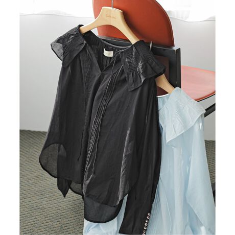 蝶のようにふわりと広がるフリルカラーには、さらに繊細なタックを。