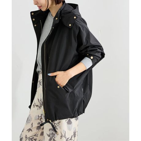 撥水性を備えたなめらかでソフトタッチな素材を使用したアノラック。